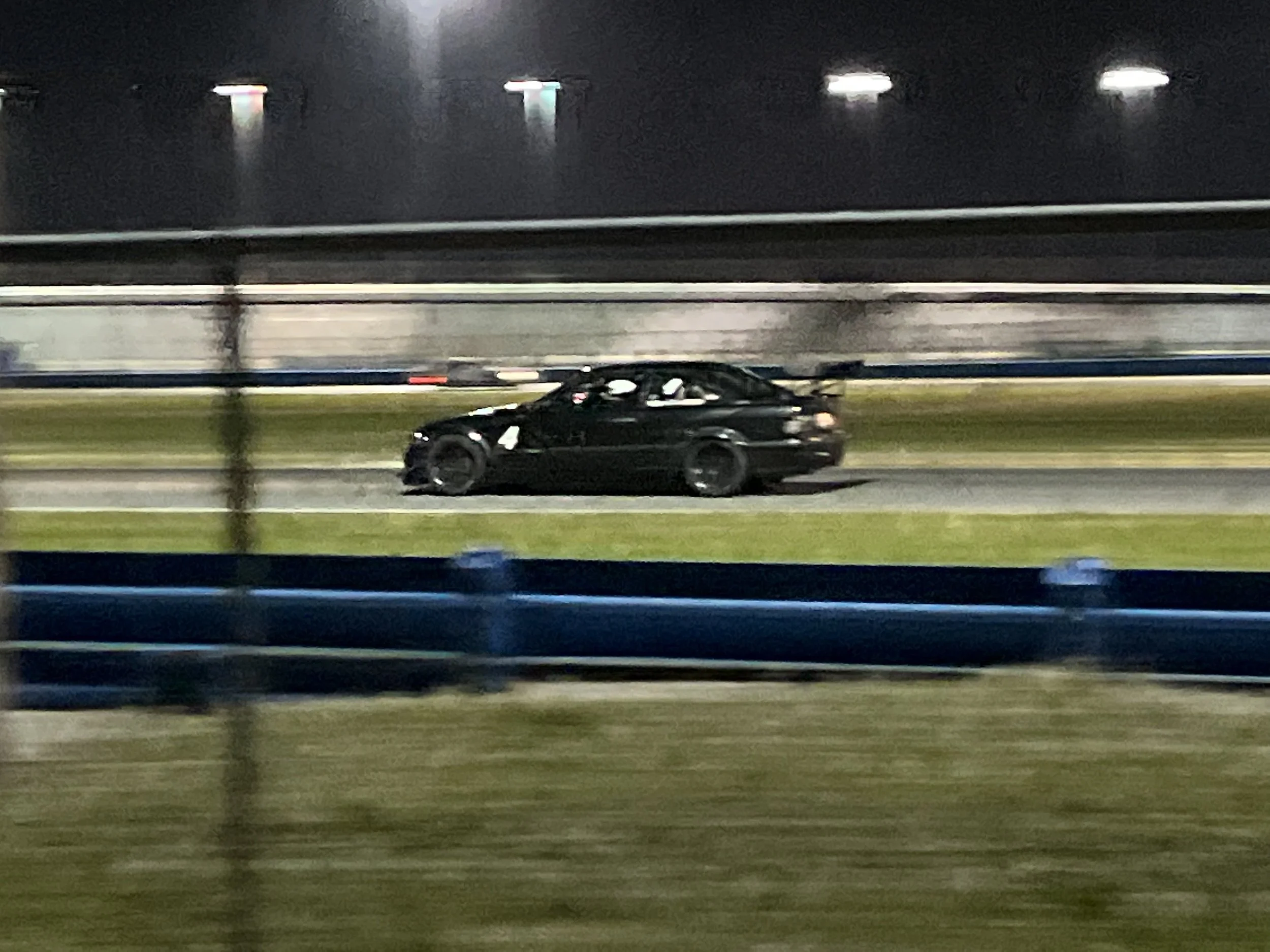 An S54-powered E36 M3. Fully-caged, individual throttle bodies, full track suspension, custom widebody, carbon fiber wing.